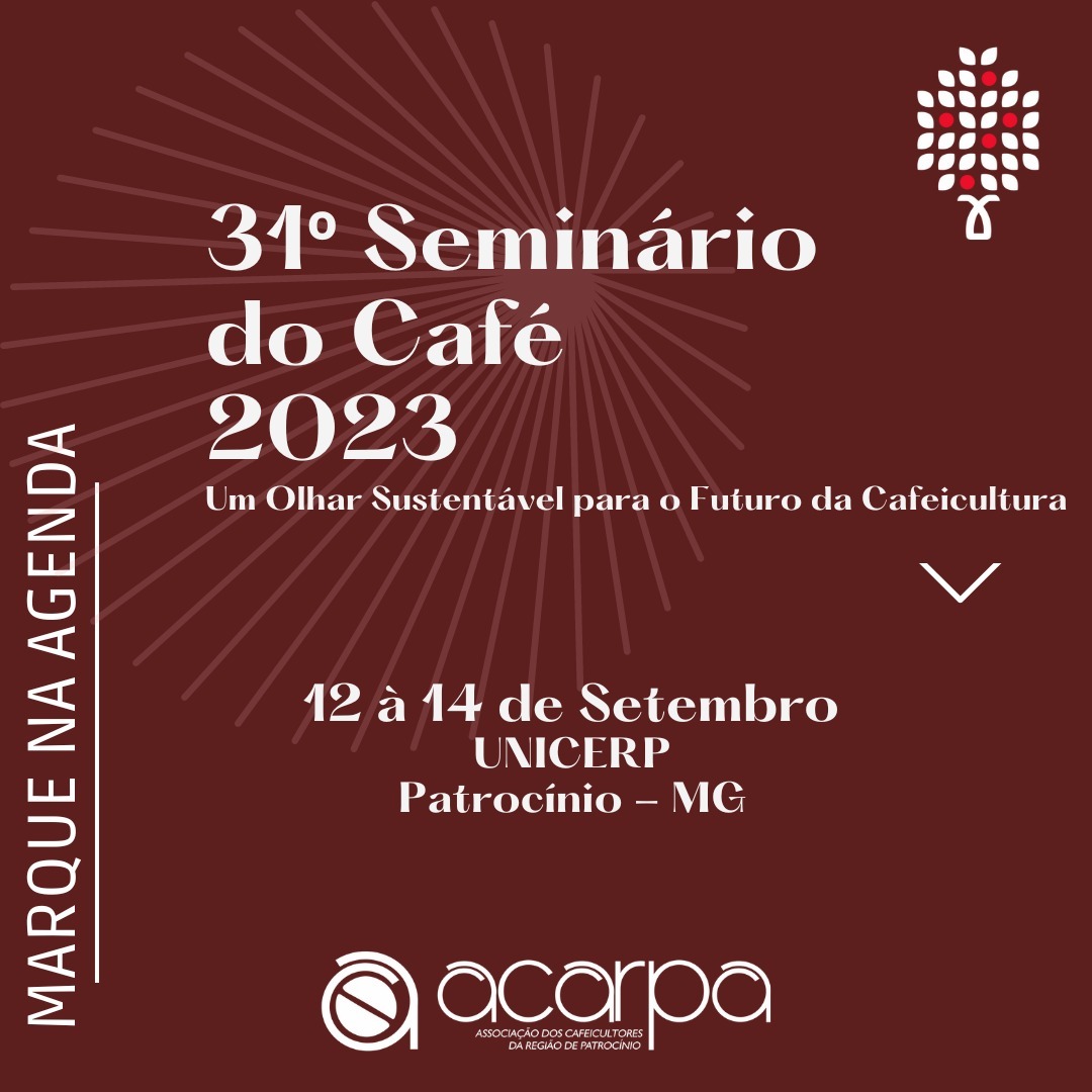 O Unicerp tem orgulho de ser, mais uma vez, a sede da 31ª edição do Seminário do Café. Promovido pela ACARPA - Associação dos Cafeicultores da Região de Patrocínio – o evento acontece entre os dias 12 e 14 de setembro e reunirá centenas de convidados, palestrantes, profissionais da área e autoridades do setor.