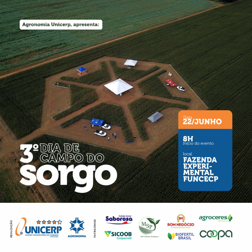 No próximo sábado, dia 22/06, estudantes, professores e agricultores irão se reunir em um evento bastante informativo, a 3ª Edição do Dia do Sorgo. Promovido pelo curso de Agronomia, o evento será realizado na Fazenda Experimental do Unicerp e trará à tona as recentes inovações, técnicas e oportunidades relacionadas ao cultivo do sorgo.