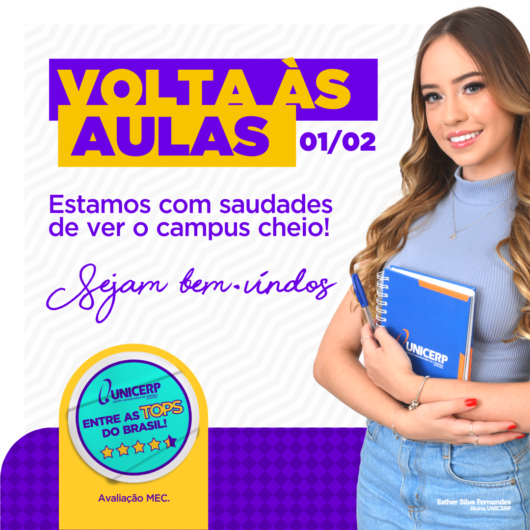 O UNICERP - Centro Universitário do Cerrado Patrocínio, informa que as aulas do 1º semestre letivo de 2024 se iniciarão no dia 01 de fevereiro, quinta-feira.
