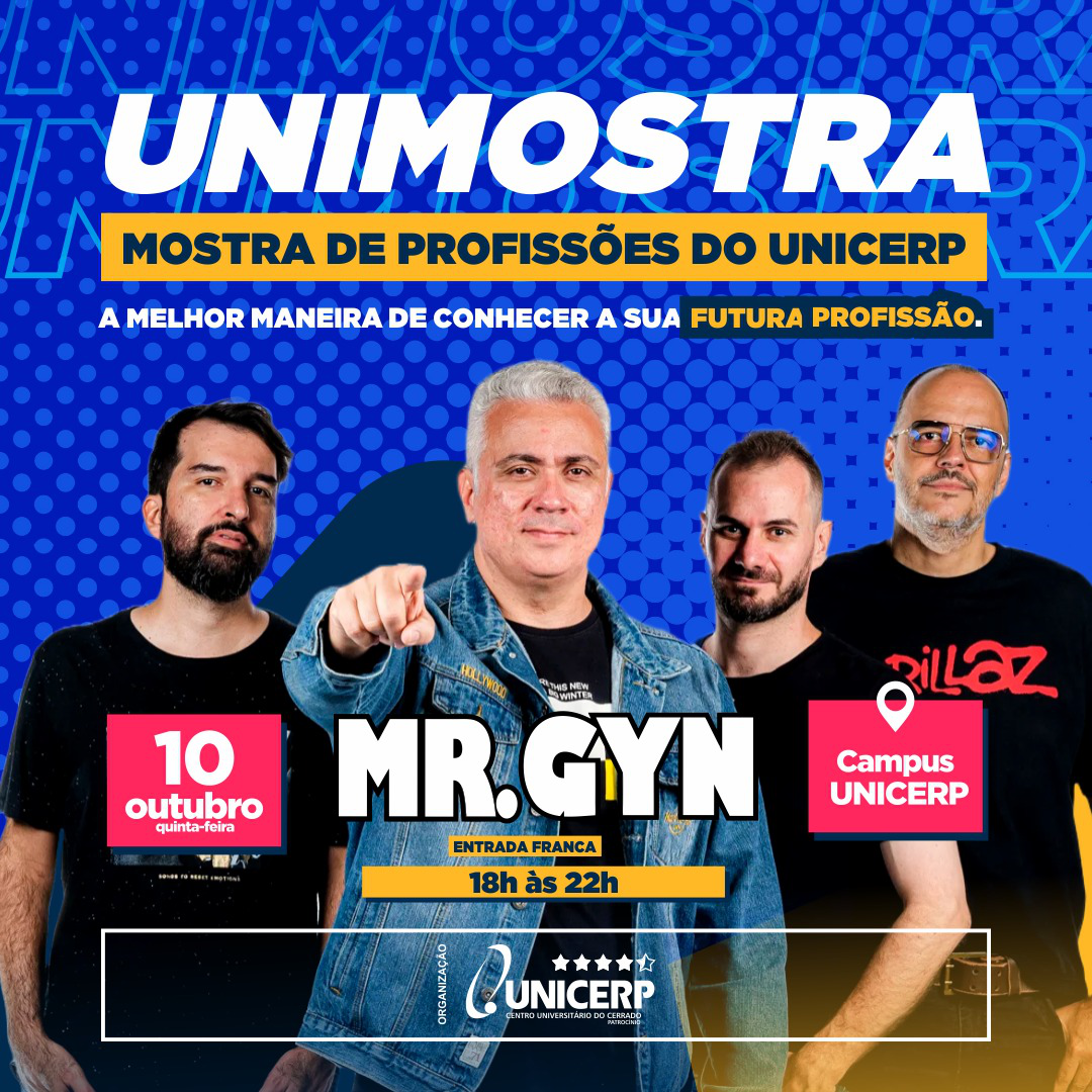 Para fechar a noite, a Unimostra conta com a apresentação da banda goiana Mr. Gyn, a partir das 20h30! Venha curtir boa música e tornar essa experiência ainda mais inesquecível!