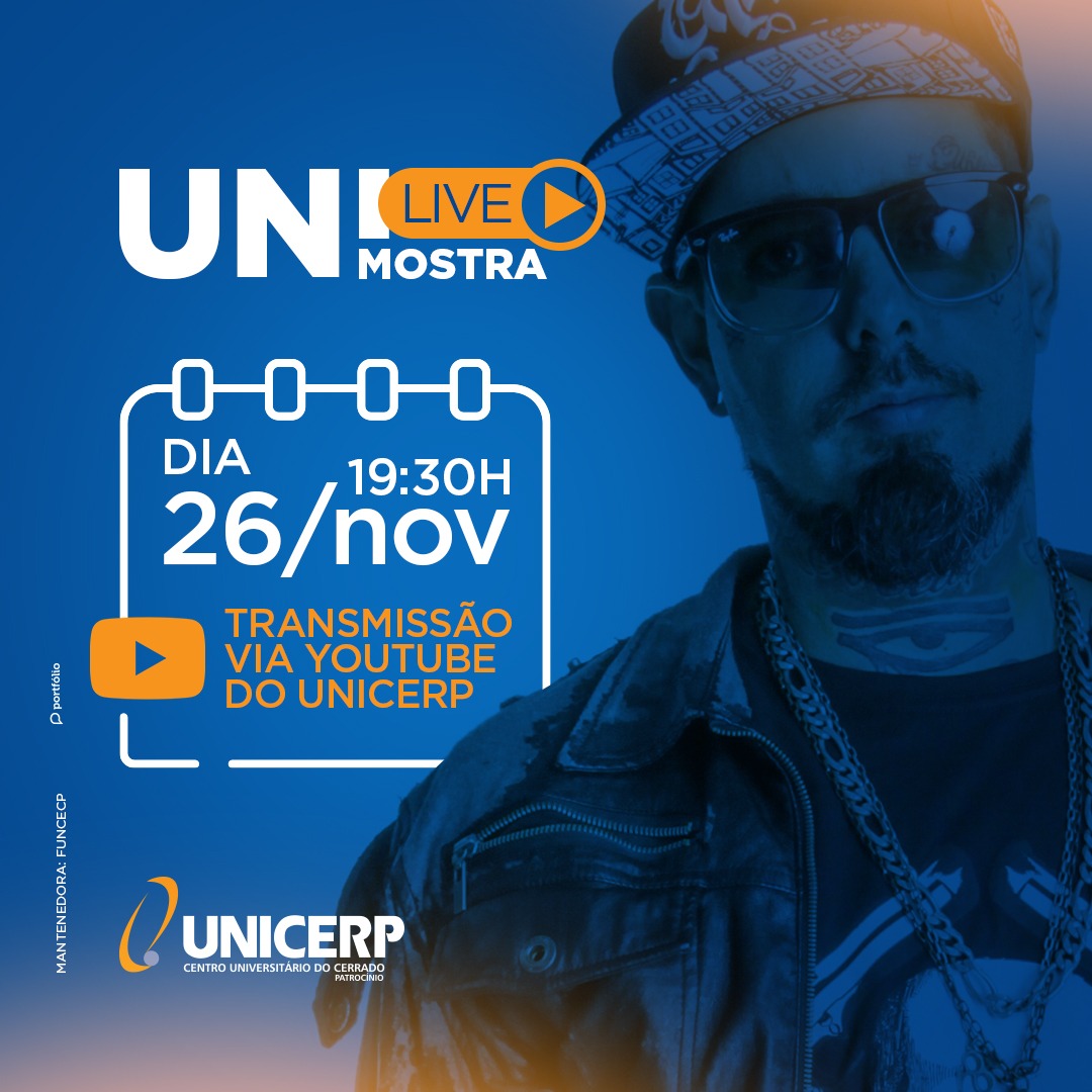 O Centro Universitário do Cerrado Patrocínio realiza, no dia 26 de novembro, a UNIMOSTRA ONLINE. O evento terá transmissão ao vivo no canal do Youtube do UNICERP, a partir das 19h30.