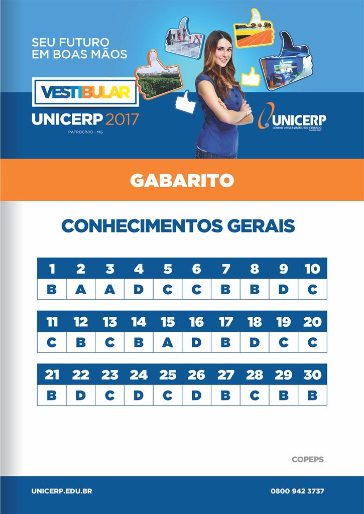 O UNICERP - Centro Universitário do Cerrado Patrocínio - divulga o gabarito oficial do Vestibular 2017.